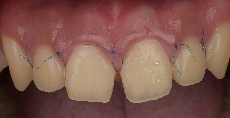 前歯の「すきっ歯(正中離開)」を改善したいというご希望で来院されました。 ただし、中切歯(真ん中の前歯)は歯ぐきが歯にかぶさっている“受動的萌出不全”の状態で、隙間をそのまま埋めてしまうと不自然に横長な歯になることが予想されました。 歯のバランスと歯ぐきのラインを両方整えることで、自然で美しい前歯の印象に仕上がりました。 |